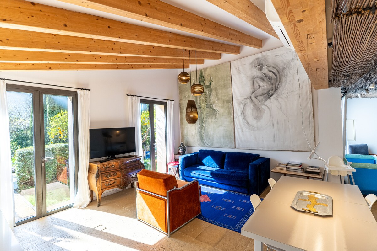 Okružena baštom, kuća je okrenuta prema velikom bazenu u mirnom okruženju s pogledom na Sijera de Tramuntana. Do centra grada možete doći pešice. Kuća ima ogroman prostor koji uključuje modernu kuhinju potpuno opremljenu, trpezariju sa dugim stolom i udoban dnevni boravak sa dimnjakom. Do 8 ljudi može udobno da boravi u kući koja ima 4 spavaće sobe, 3 kupatila i toalet. Takođe je veoma dobro opremljen (klima, grejanje,…).