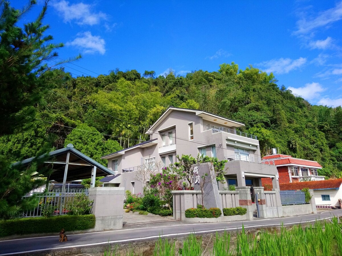 Nalazimo se u blizini spomenika geo-centru u bungalovu na polju okruženom belim ananasom, papajom, borovima, cvećem, povrćem itd. Okolina je tiha i mirna, pogodna za opuštajući odmor.Obližnje mesto za razgledanje Sun Yue Tan udaljeno je 25 minuta vožnje, a klub Mist udaljen je 20 minuta vožnje.Organizovanje plivanja u suncu i mjesečevom bazenu ili vožnje biciklom do čistine na farmi, pogodan je smještaj za aktivnosti u Wu Yuan-u.Vrlo udoban i prijateljski životni prostor ako želite da ostanete duže na Tajvanu.Ugošćavam mjesečne boravke za prijatelje smještaja za kratkoročne boravke.Stoga je cijena najma niža, pa je prikladno za prijatelje koji putuju na kraće vrijeme. Cela kuća ima tri apartmana sa privatnim kupatilom.Jedna dvokrevetna soba, dve jednokrevetne sobe.Kuhinja je opremljena frižiderom, šporetom na gas, rernom, aparatom za kafu, sospanom i kuhinjskim priborom.