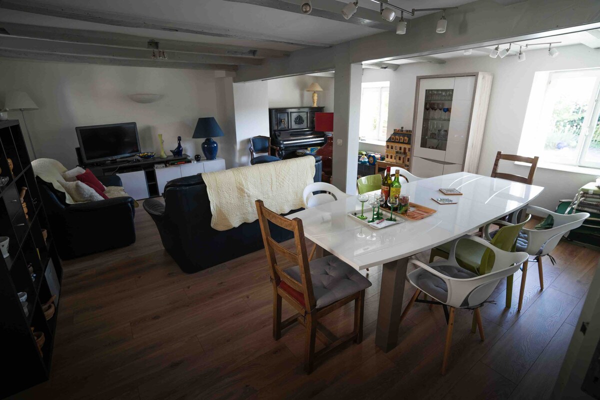Vous venez visiter la région, voir de la famille ? En déplacement professionnel ? Ne cherchez plus, vous êtes au bon endroit ! Passionnés de bricolage, de rénovation et de travaux manuels, nous avons mis la main à la pâte pour vous offrir ce magnifique cadre. L’agencement et le mobilier a été pensé pour optimiser l’espace et se sentir comme à la maison, même loin de la maison ! Bénéficiant d’une boîte à clés, vous serez libre d’arriver à l’heure de votre choix