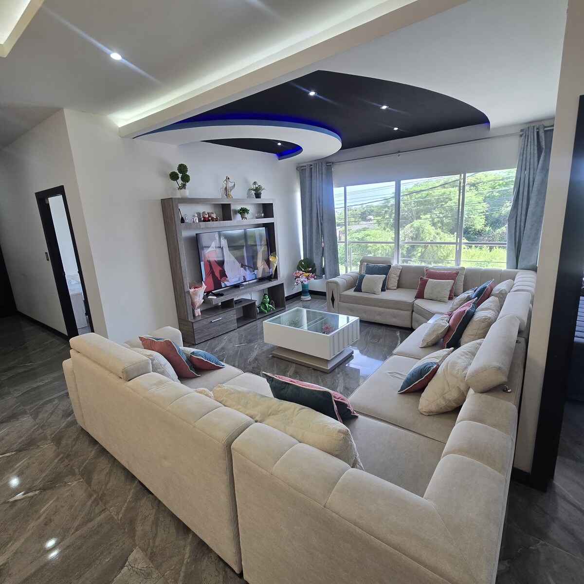 Opustite se sa porodicom u ovoj prostranoj kući na 2 minuta od Paseo Shoppinga, u privatnom objektu sa danonoćnim obezbjeđenjem. Uživajte u direktnom pristupu plaži, hidromasažnom bazenu, opremljenoj kuhinji (frižider, mikrotalasna pećnica, blender, šporet za pirinač, pribor za jelo), TV-u s internetom i vrućim tuševima. Savršeno za opuštanje i uživanje u udobnom, bezbjednom i mirnom okruženju.