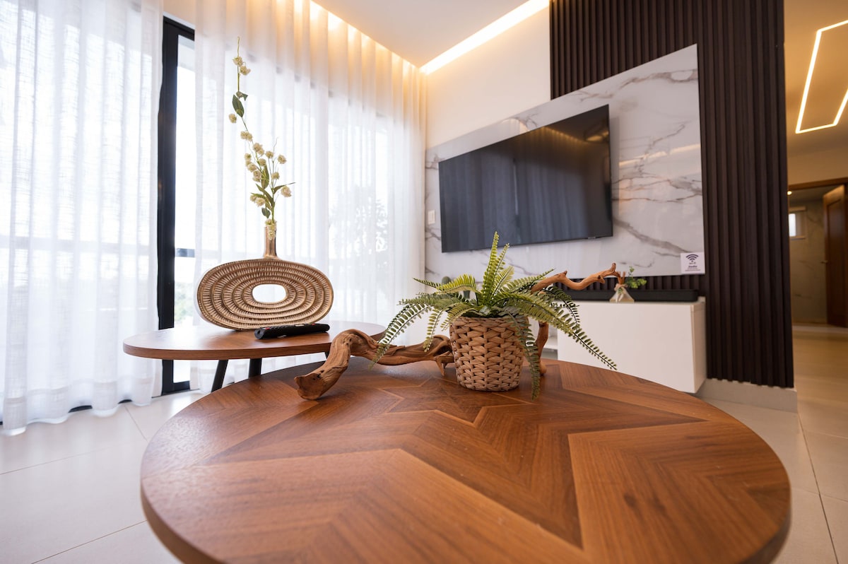 Dođite i uživajte u ovom prelijepom apartmanu sa 1 spavaćom sobom. Ograđeni kompleks sa 24/7 obezbjeđenjem, stazom za trčanje, teretanom, malim jezerom, bazenom, brzim Wi-Fi mrežom, klima uređajem. Inverter za toplu vodu. Balkon za opuštanje noću. 2 televizora sa Netfliksom, mašina za pranje veša sa mašinom za sušenje veša, sef, aparat za kafu, blender, mikrotalasna pećnica, toster. Stacionarna stanica za bicikle savršeno mjesto za rad od kuće i istovremeno odmor.