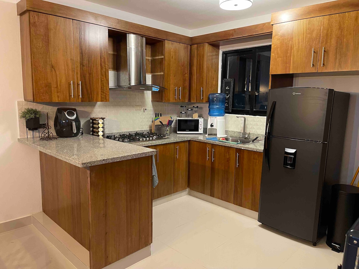 Ovaj novi stan je savršen smeštaj za odmor sa porodicom i prijateljima. Nalazi se na 10 minuta od aerodroma Santijago, pun sadržaja i potpuno je namješten. Tu su 3,5 kupatila, 3 spavaće sobe sa klima-uređajem i spavaća soba za goste sa bračnim krevetom, ventilatorom i sopstvenim kupatilom. potpuno opremljena kuhinja, dve dnevne sobe, klima uređaj, dva pametna televizora od 50inča, Bluetooth zvučnici i dva parking mesta. Možete uživati i u okruženju kompleksa kao što su igralište, bazen, prostorija za događaje, jezero i sportski teren.