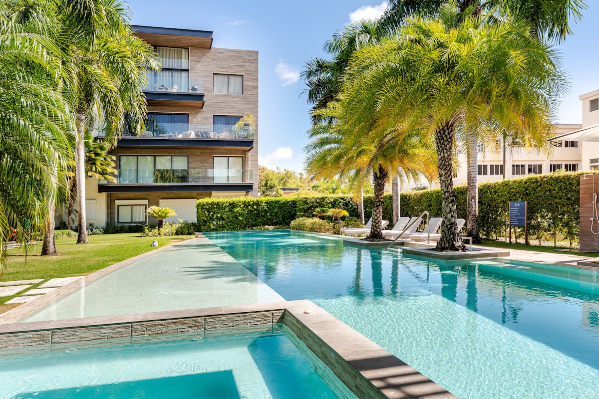 Vaša luksuzna oaza sa punim pristupom ekskluzivnom kompleksu Kap Kana! Uživajte u privatnim plažama, poznatoj marini, restoranima i još mnogo toga. Naš moderni stan nudi ogroman bazen, spa sobu, teretanu i privatni balkon. Savršeno se nalazi nekoliko minuta od najboljih golf terena, Blue Mall-a, Punta Cana Village-a i aerodroma (PUJ). Bilo da tražite avanturu ili apsolutno opuštanje, naš prostor je osmišljen da bude vaša savršena baza u raju.