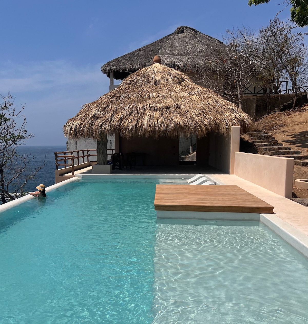 Buđenje u ovom smještaju je san! Kuća se nalazi na samoj plaži uz more i svakog dana možete uživati u najboljim zalascima sunca. Ima dva nivoa. Spavaća soba je na vrhu, kao i radni prostor (Starlink) i viseće ležaljke za odmor. Plafon je sjajna palapa. Kuća ima mali privatni bazen sa kojeg možete uživati u najboljem pogledu na Plaja Mermejitu. Kuća je veoma otvorena za uživanje u svježini vjetra i najboljim pogledima.
