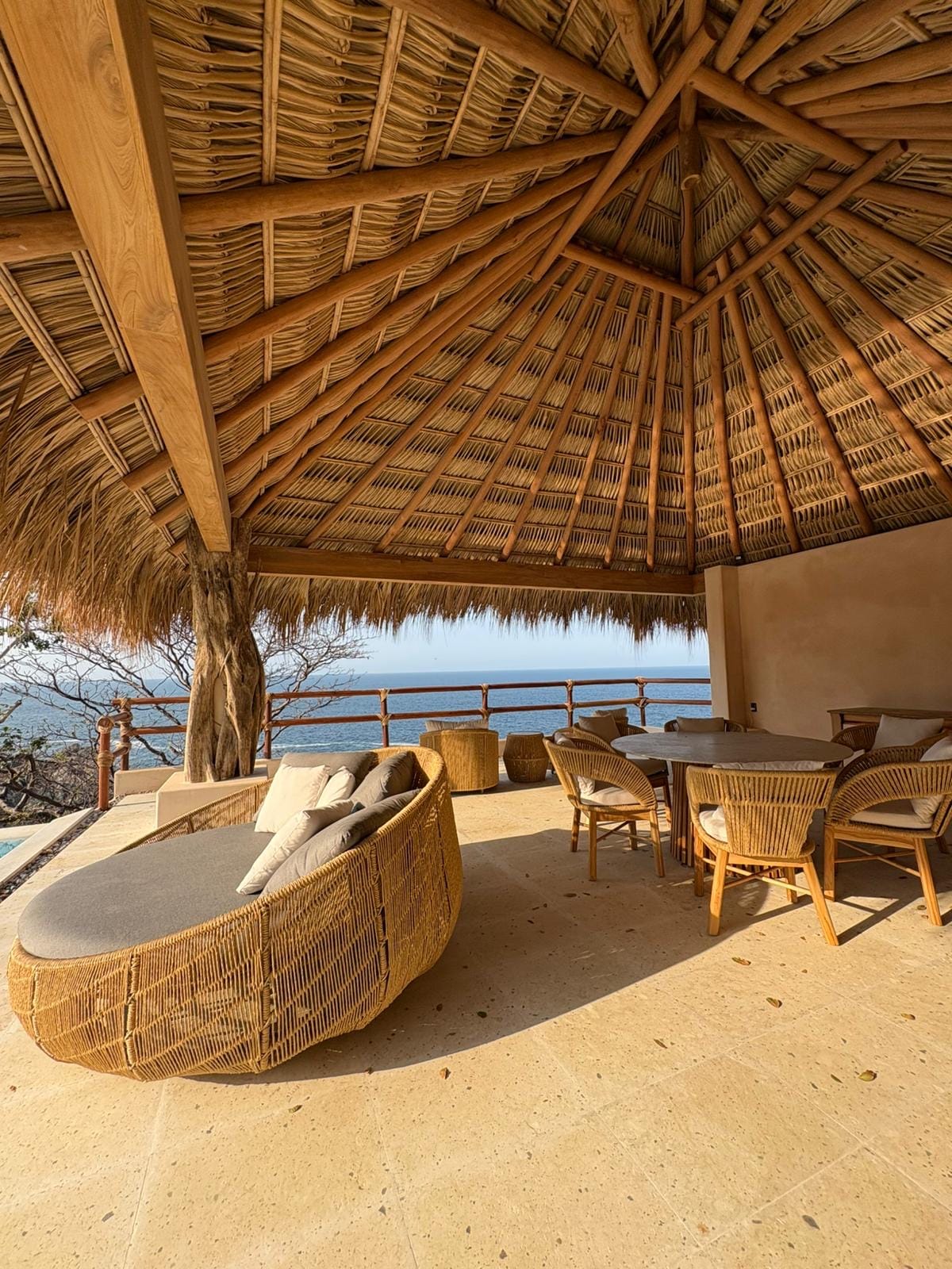 Designer Oaxacan vacation home nestled in nature, with forever views of an unspoiled coastline. Designed for maximum relaxation and pleasure, with living spaces on both levels; a large, chef's kitchen, 3 screened-in bedrooms (2 w/AC), 3 baths, outdoor shower, hot water, laundry, and a private swimming beach with epic marine life. With NO INTERNET! Intentionally. Which is the biggest luxury of all. This is more than a home. It's a private sanctuary, and getaway for your mind.