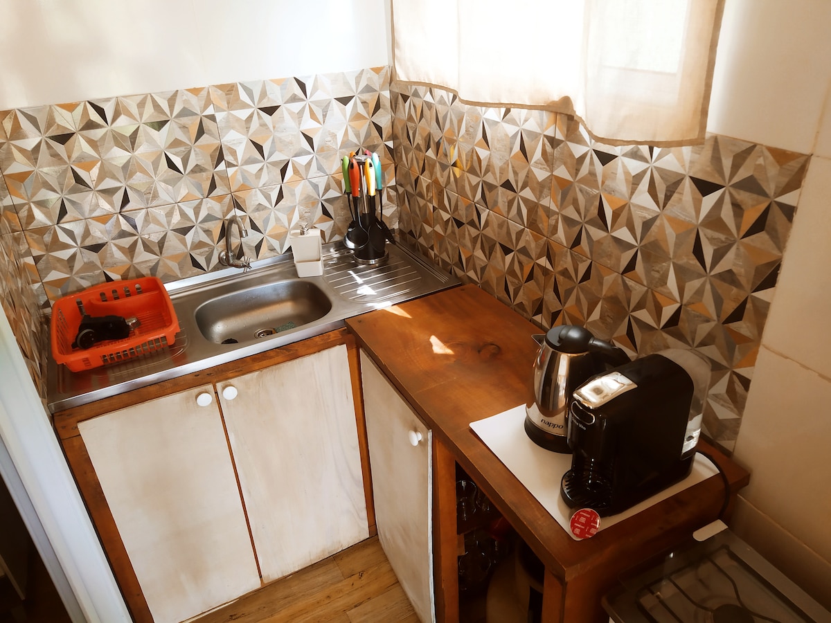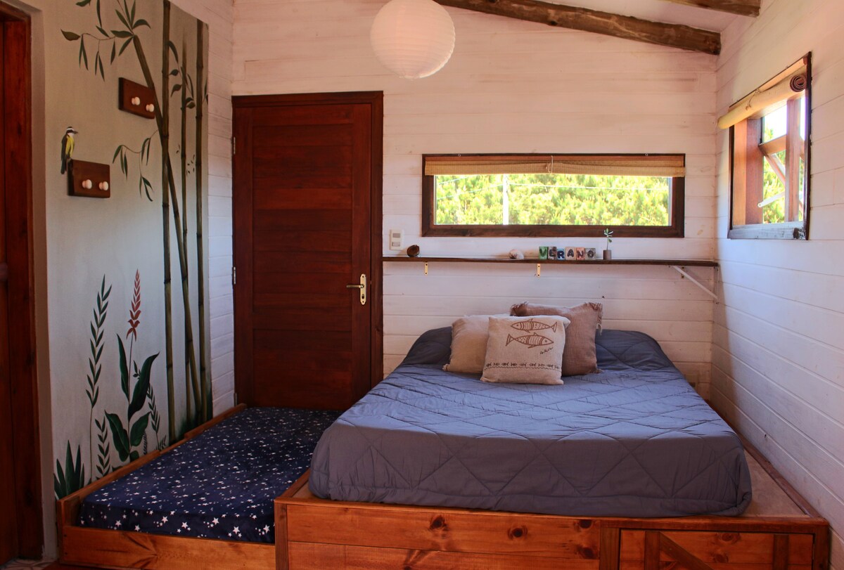 To je mala brvnara napravljena od drveta. Veoma topla, svetla i romantična atmosfera. Idealno za parove,putnike ili backpackere koji se nalaze u četvrti Los Anđeles Viuda. 10 minuta od plaže. 20 minuta od grada(peške)