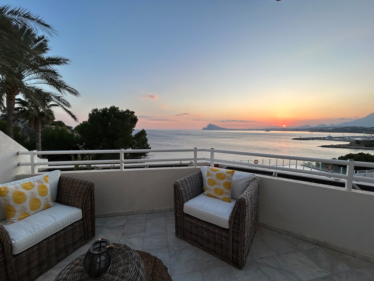 Dobro došli u Alteu u šarmantnom Pueblo Mascaratu, sa mnoštvom besplatnih parkinga! Ovaj luksuzni stan nudi pogled na more koji oduzima dah i savršena je baza za bicikliste. Sa 2 spavaće sobe, 2 kupatila, kuhinjom, dnevnim boravkom, TV-om i besplatnim bežičnim internetom, imaćete sav prostor koji vam treba za udoban odmor. Samo 1 minut hoda od plaže, možete da uživate u kristalno čistom moru svakog dana. Iskustvo koje ćete ovde imati biće veličanstveno. Rezervišite sada za nezaboravan boravak!