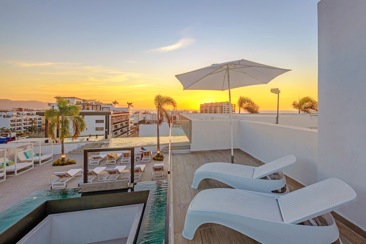 Ocean views, rooftop sunsets, and the best of Puerto Vallarta at your doorstep. This modern 1BR condo sits high on the 11th floor of the luxury 105 Sail View in the heart of Zona Romántica — three short blocks from Playa Los Muertos. Step outside to cafés, galleries, beach clubs, and nightlife… then come home to quiet, elevation, and sweeping Pacific views. Morning coffee on your balcony, afternoons at the infinity pool, evenings watching the sun melt into the ocean — floating above it all.
