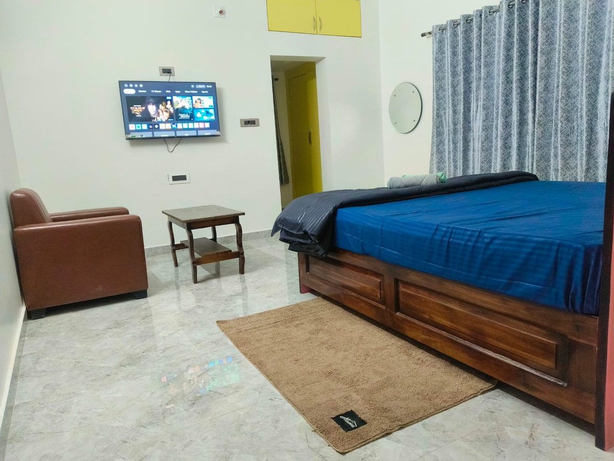 Nezavisna kuća od 500 kvadratnih stopa u potpunosti za goste. Potpuno namješten 1-BHK objekat unutar poznate ograđene zajednice (u neposrednoj blizini plaže) sa mirnim okruženjem i savršenim ambijentom. Objekat je opremljen svim vrstama modernih sadržaja i sadržaja. Postoji poseban staratelj koji će se pobrinuti za uslove gostiju. Mnogo spoljnih prostora u sklopu kompleksa - odmaralište na plaži, bazen, restoran, bašta i prostor za igru itd. To je skoro savršeno mjesto - DOM daleko od DOMA !