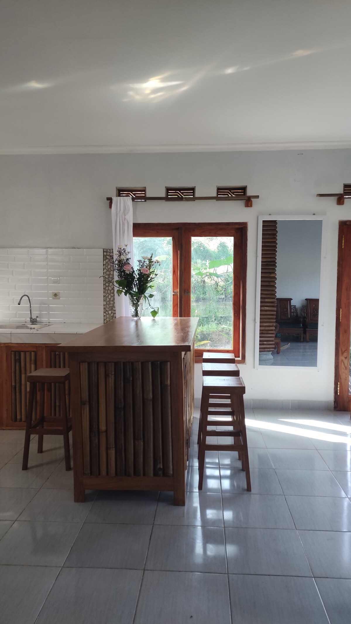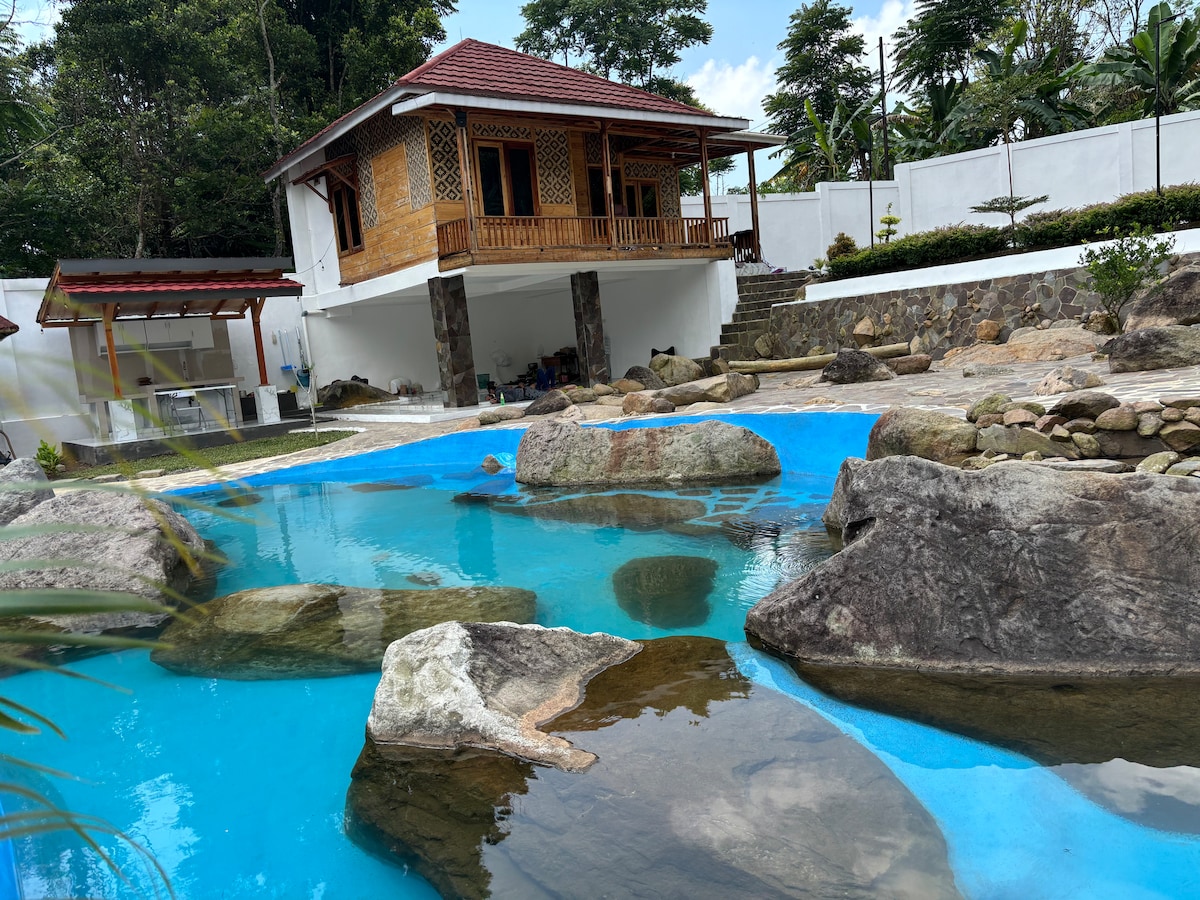Predivna vila od bambusa u Purwakarti sa udobnim 3 spavaće sobe, 2 kupatila, dnevnom sobom, kuhinjom, eko bazenom/privatnim bazenom sa prirodnom vodom iz planina (bez hlora) i prostorom za roštilj. Nudeći prekrasan pogled na planinsko i pirinčano polje, izlaze sunca, zalaske sunca (ako imate sreće) retke ptice u aprilu do avgusta i autentičnost života u malom selu u Zapadnoj Javi. Ova vila se nalazi između Džakarte i Bandunga.