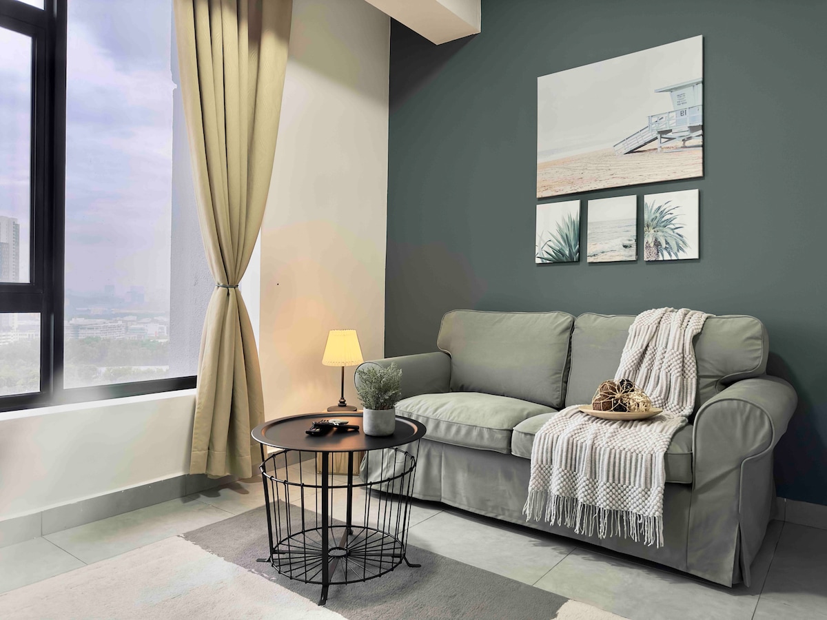 Naš elegantni, ekološki osviješteni jednosobni apartman s pogledom na vrt u Kanvas SOHU savršen je za parove, odmore ili vikend-putovanja. Samo 25 km od KLIA/KLIA2 i pješke do Tapak Food Truck, D'Pulze Mall, Burger King, KK Mart, kafića i još mnogo toga. 🛏️ Udoban bračni krevet (širine 150-179 cm) i kauč na razvlačenje 🌿 Predivan pogled na Putrajaju 📶 Brzi Wi-Fi 🎬 Netflix 🏊♀️ Preljevni bazen 🌇Pristup nebeskom salonu i teretani 🅿️ Besplatan parking 🚗 Jednostavan pristup autoputu Uživajte u opuštajućem boravku uz modernu udobnost, prirodu i praktičnost grada.