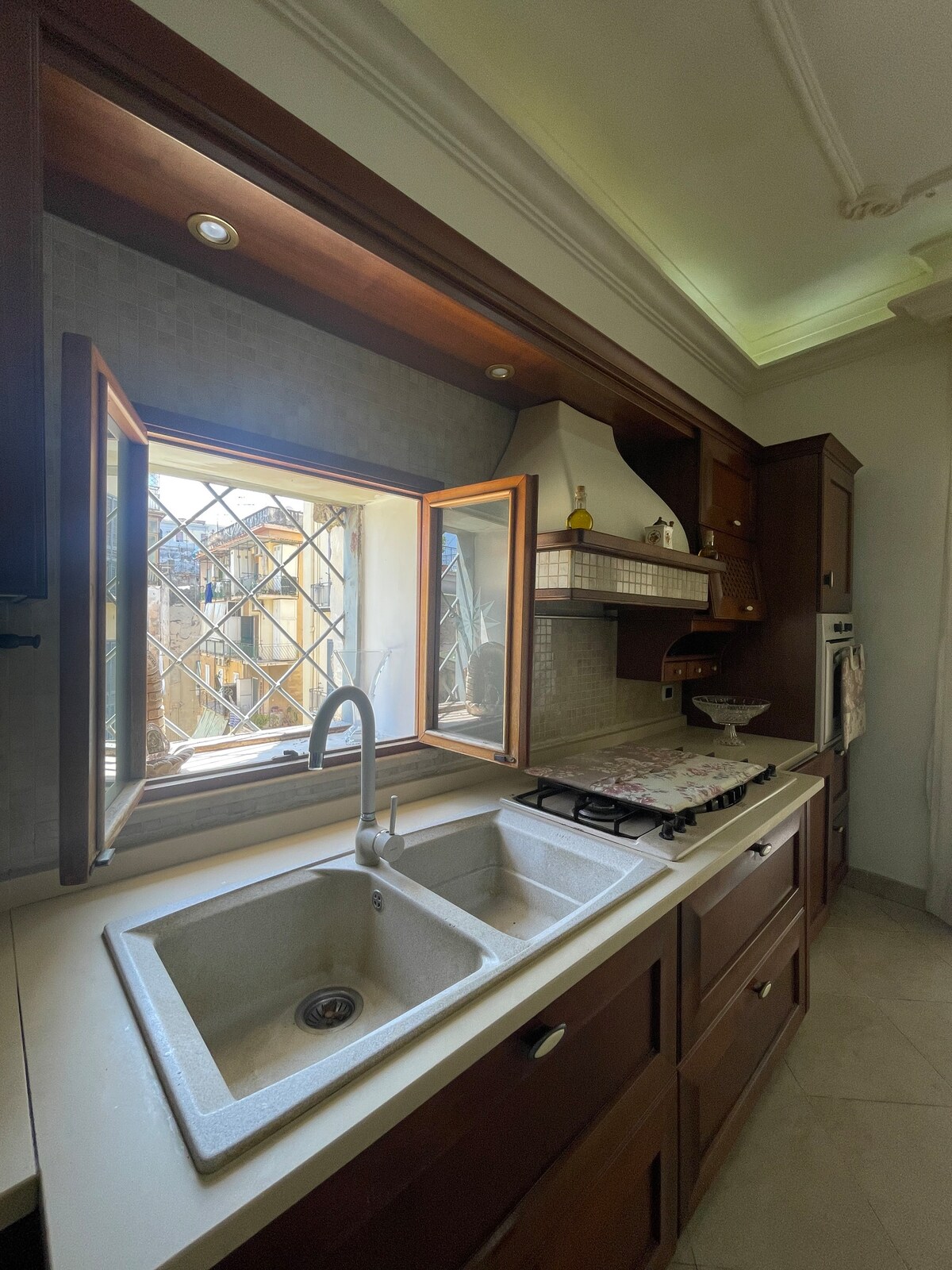 Svijetli stan od 100 kvadratnih metara nedavno renoviran, nalazi se na trećem spratu bez lifta drevne zgrade, nalazi se u srcu španske četvrti, nekoliko koraka od istorijskog centra. Kuća se sastoji od: 3 dvokrevetne sobe sa privatnim kupatilom, zajedničke kuhinje/dnevnog boravka, vešernice sa mašinom za pranje veša na raspolaganju gostima, terase opremljene od 130 kvadratnih metara sa kuhinjom u zidovima i direktnim pristupom iz kuće i pogledom na krovove Napulja, Vezuva i Certosa di San Martino.