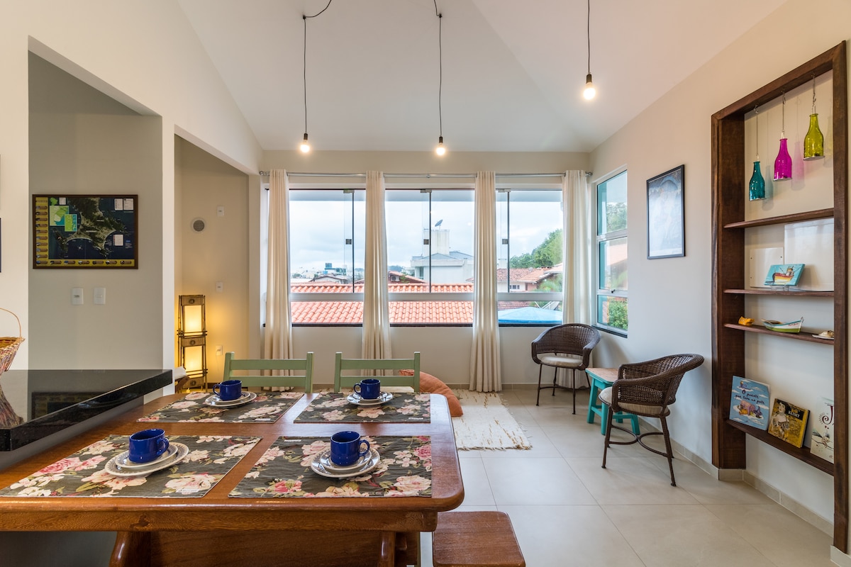 Jedinstven doživljaj za parove koji traže utočište uz potpunu interakciju u prirodi. Naša kuća je planirana sa ekološkim konceptom bez odricanja od sve udobnosti za odmor i punjenje baterije. Pripremite se da se probudite uz fenomenalan pogled na šumsko područje i uživate u tišini u skladu sa zvucima ptica! Ovdje ćete biti uronjeni u atlantsku šumu, a istovremeno ćete biti pored veličanstvenih plaža poluostrva Bombinhas.