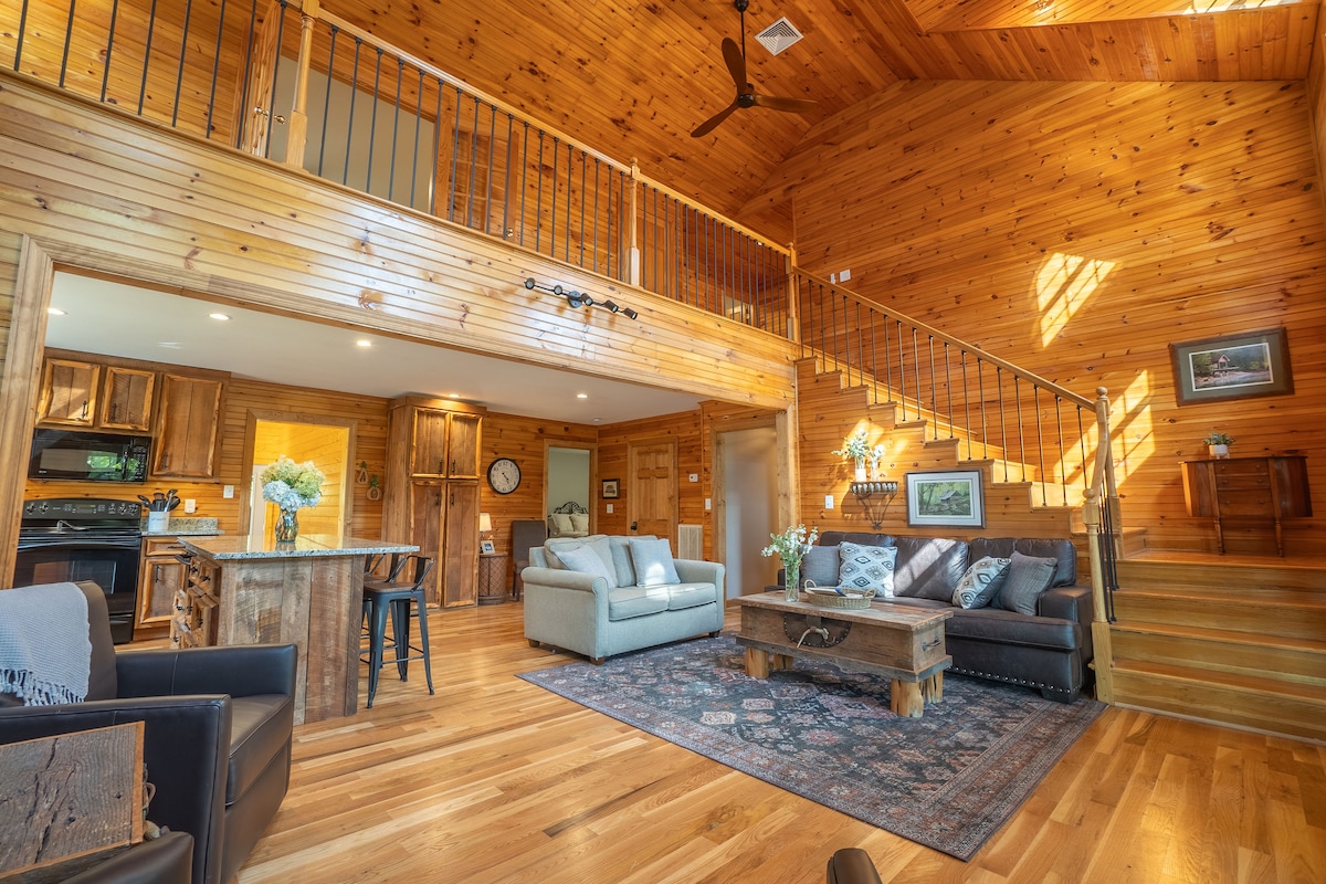 Tražite privatni i miran odmor? „The Lodge” nudi šarmantno i udobno utočište u srcu ostrva Rok, TN. Smješten usred zapanjujuće prirode, naš objekat ima vrhunske sadržaje kao što su potpuno opremljena kuhinja, privatni balkoni, pogled na vodu i igraonicu prikladnu za djecu. Smještaj se nalazi na privatnoj šumovitoj parceli od 2 hektara koja se nalazi na rijeci Rocky River. Koliba ima mnogo nadogradnji, a istovremeno pruža taj rustikalni ugođaj brvnare.
