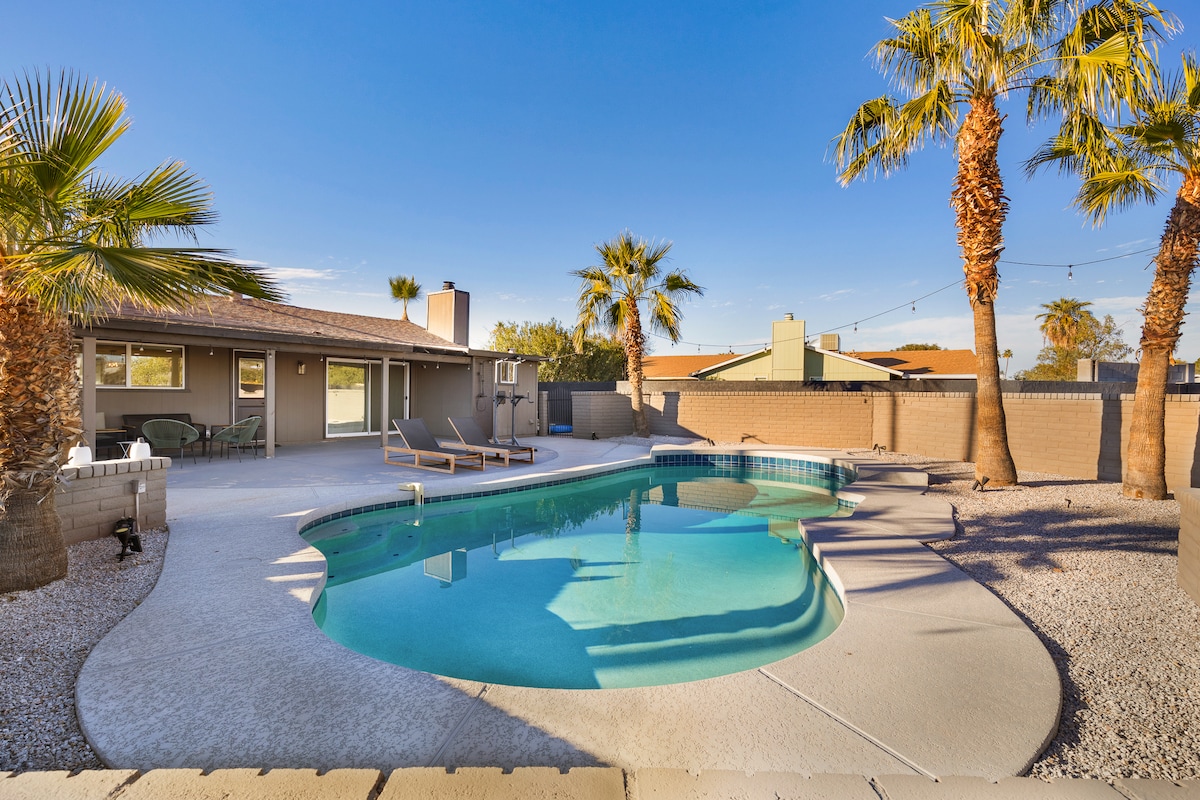 Uronite u ovo prelijepo luksuzno utočište! Opustite se pored privatnog bazena u ovoj oazi u dvorištu. Uživajte u pogodnostima uz odličnu lokaciju u blizini Čendlerovih/Gilbertovih glavnih atrakcija i područja zabave. Samo nekoliko minuta udaljen od centra Čendlera i glavnih autoputeva koji će vas lako odvesti bilo gdje u dolini Finiksa. Idealno za odmor porodica ili prijatelja, kao i za profesionalne putnike, ovo utočište udobno prima do 8 gostiju za besprekoran spoj opuštanja i istraživanja.