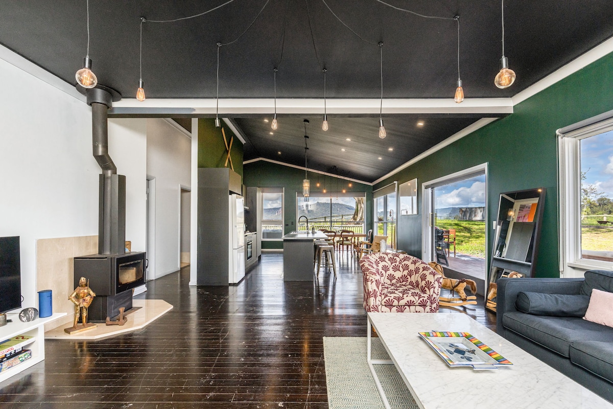Jedinstvena kuća u toskanskom stilu na 22 hektara valovitih brda i prašume. Uživajte u obilju svježeg vazduha i prostora za opuštanje daleko od gužve Nahranite divlje ptice, uočite valabije! Posmatrajte konje kako pasu. Bazen sa slanom vodom. Topli spa centar. Vatra na drva za prohladne noći! Ukusan doručak uz lokalne proizvode. Terasa s pogledom na dolinu, za objedovanje i opuštanje na otvorenom.