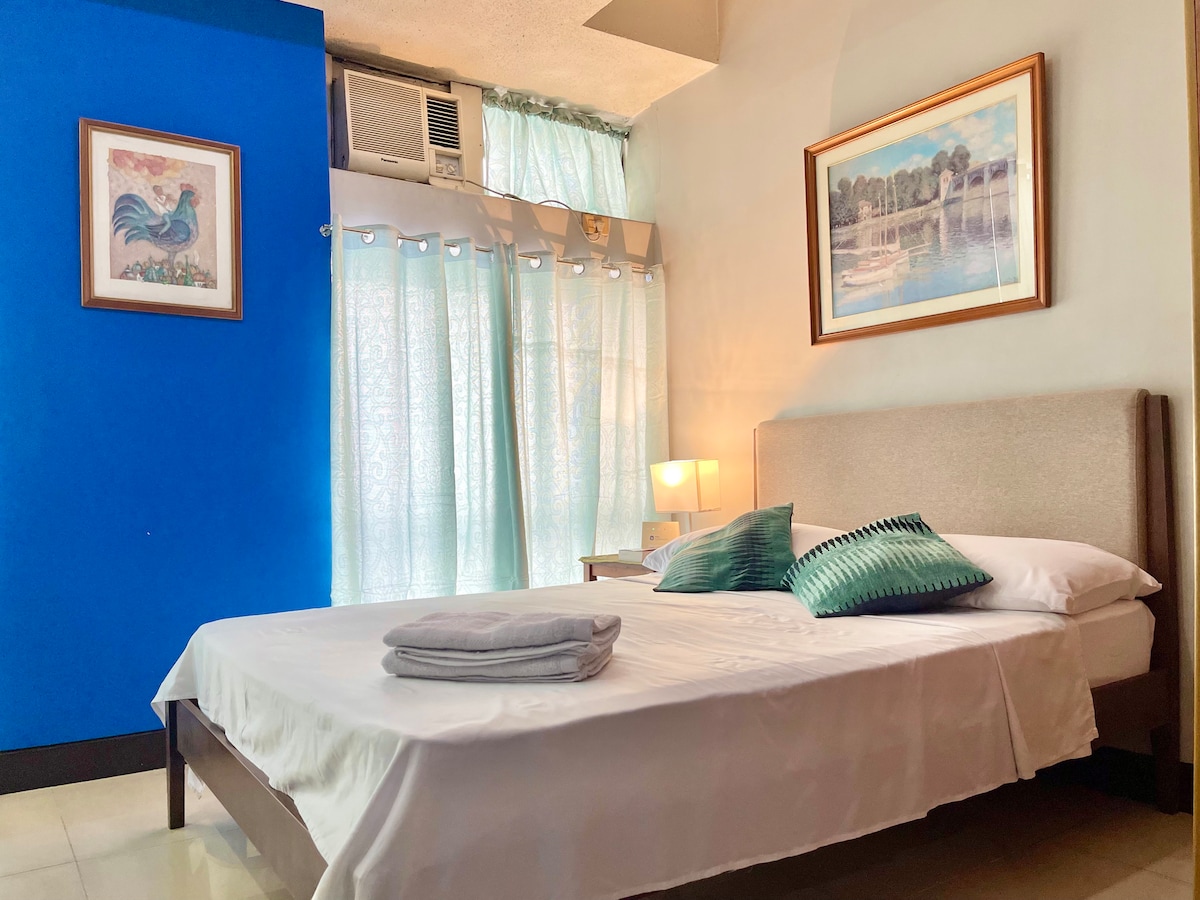 Sa svježim enterijerom inspirisanim tropskim stanovništvom, ova 1BR jedinica u rezidenciji One Uptown u Bonifacio Global Sitiju gostima nudi nezaboravan i opuštajući boravak. *BESPLATAN WI-FI od 400 Mbps, Smart TV, kablovska, Netflix, Disney+ *Mašina za pranje i sušenje veša *Bazen *Potpuno opremljena kuhinja sa šporetom, frižiderom, mikrotalasnom rernom, aparatom za kafu, tosterom, posuđem za kuvanje i trpezariju. Nalazi se odmah preko puta tržnog centra Uptown Mall, The Palace, Mitsukoshi Mall i Grand Hyatt Hotel. 7-10 minuta hoda do medicinskog centra Svetog Luke i ulice Haj u BGC-u.