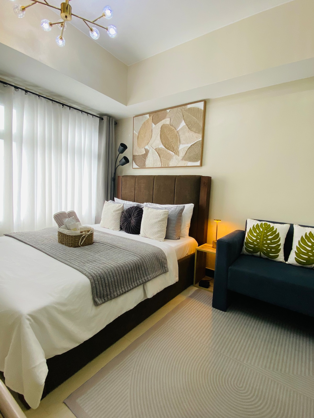 Dobro došli u naš prozračni savremeni i mediteranski inspirisani Tahanan, studio apartman od 25 m2 u Mandalujongu, nedaleko od Rokvela i tržnog centra Powerplant! Dizajnirali smo naš prostor kako bismo obezbijedili udoban boravak i snimili zadivljujući pogled na zalazak sunca, kao i pogled na Mandalujong i Makati sa našeg balkona. Bez obzira na to da li dolazite poslovno, u slobodno vrijeme ili zbog kombinacije oboje, naš dobro opremljen Airbnb je savršena baza za istraživanje živopisnih gradova Mandalujong i Makati.