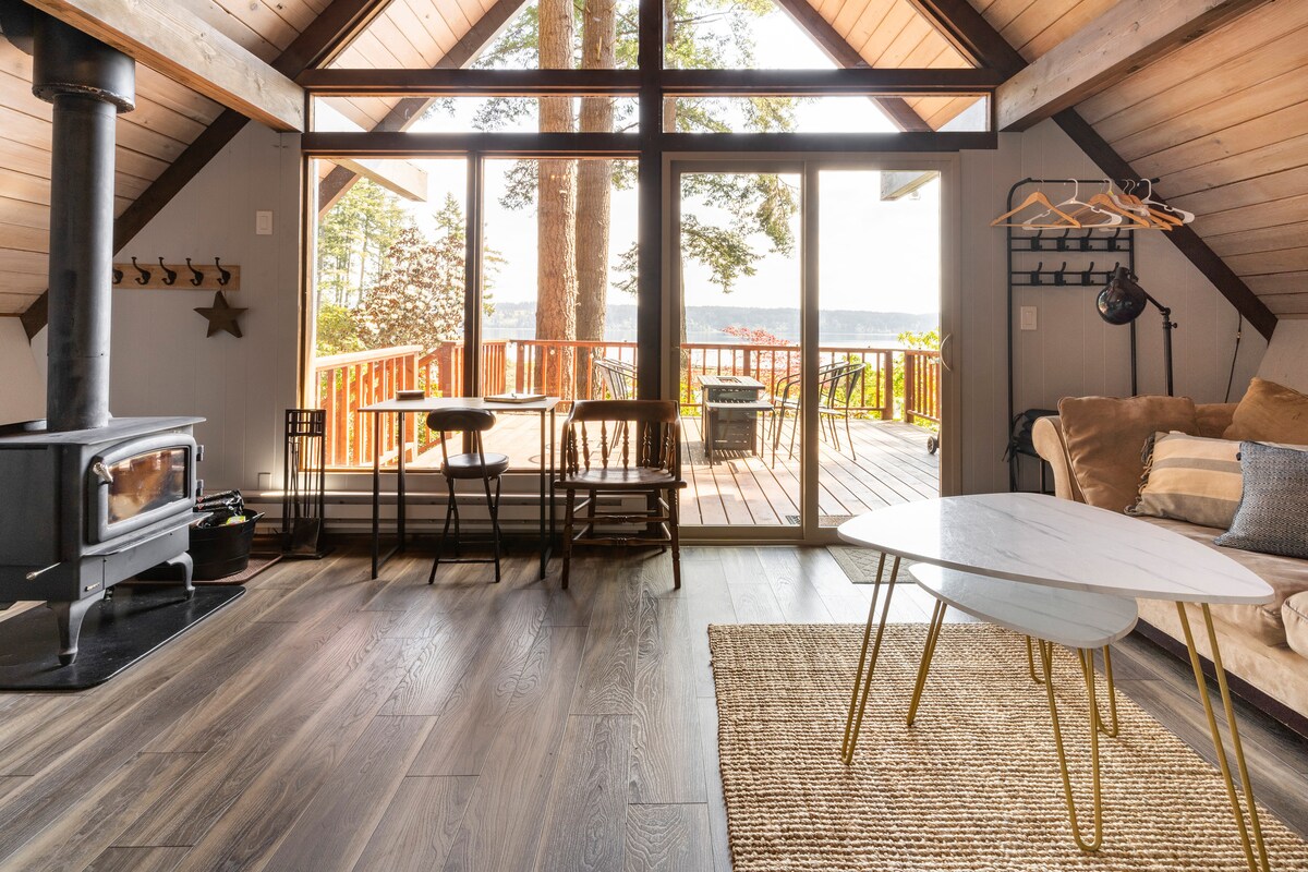 Enjoy the waterfront view by the woodstove, or roast s’mores & absorb the tranquility at the gas firepit on the spacious deck. A perfect cozy winter retreat, you are right on the low bank waterfront of a private lagoon, & the Hood Canal, surrounded by woods. Outdoor amenities abound, with a pickleball court, 2 paddleboards, rowboat, & firepits at the beach & lagoon. Enjoy a scenic 1 hour drive to Olympic National Park, or watch for porpoises, otters and the resident bald eagles from the couch.