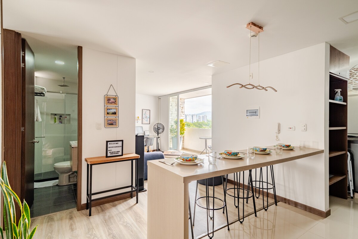 **Šarmantni apartman u Jermeniji** Uživajte u nezaboravnom boravku u našem apartmanskom studiju s pogledom na planinski lanac, koji se nalazi na četvrtom spratu. Smješteni u odličnom području Jermenije, bićete u blizini parkova, tržnih centara, klinika, restorana i još mnogo toga. Uz jednostavan pristup javnom prevozu, možete doći do turističkih destinacija kao što su Circasia, Salento i Filandia. Zgrada nudi bazen, đakuzi, saunu, bilijar i prostor za druženje. Savršeno za vašu Eje Cafetero avanturu!