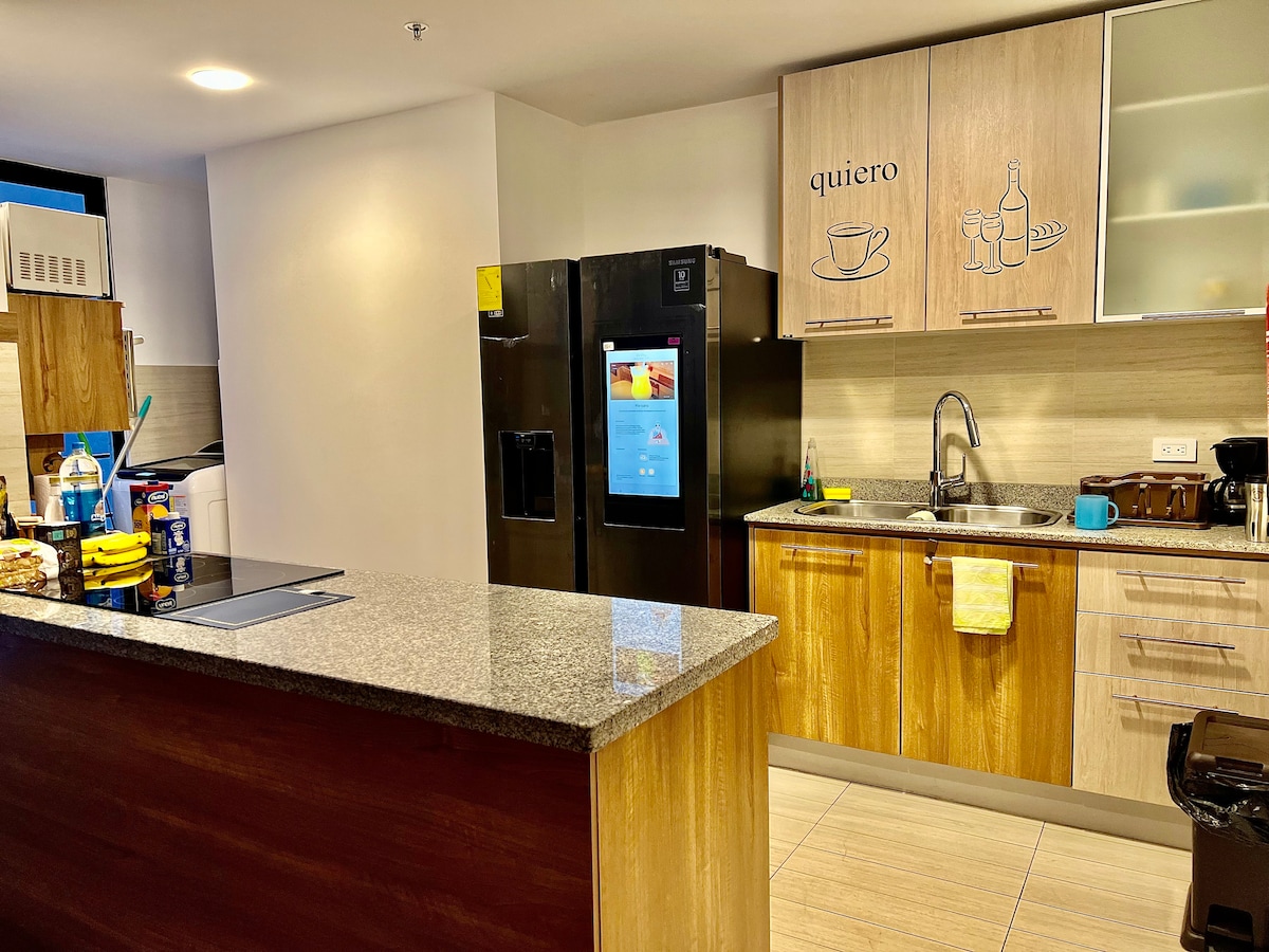 We are located 3 blocks from La Carolina Park and the same distance from Metropolitan Park. From the airport, the drive is 40 minutes. Downtown Quito is 5 km away (17 minutes), and the Middle of the World City is 26 km away (40 minutes). Free parking, 24-hour reception, and free Wi-Fi. In the apartment you will find: 2 bedrooms 2 bathrooms living room equipped kitchen, dining room, washer and dryer 2 flat-screen Smart TVs 24/7 security