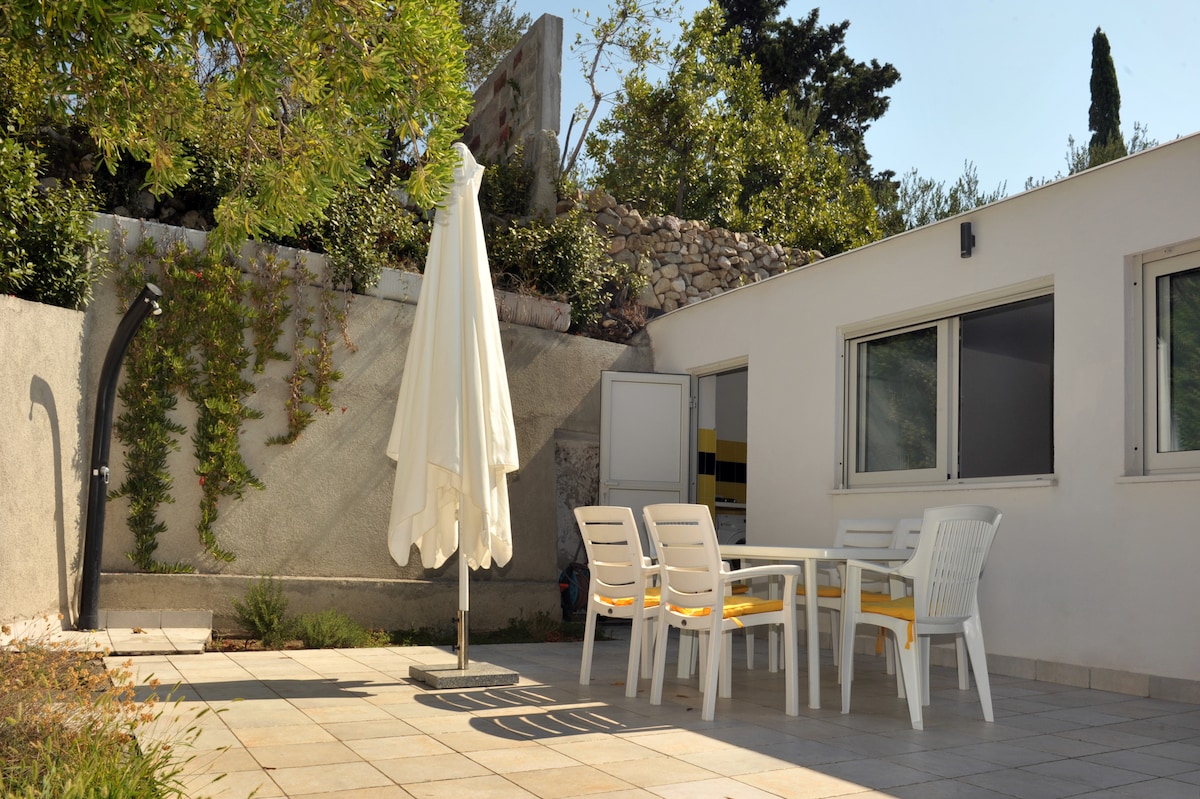 Toš ap se nalazi u srednjem prizemlju renovirane tradicionalne kuće, koja se nalazi u srcu primorskog sela, opremljena tradicijom. Nije najsjajnija, ali nudi udobnost u letnjoj vrućini. Ap. se sastoji od dnevnog boravka sa kuhinjom, spavaćom sobom i kupatilom i pogodan je za porodice. Gosti imaju pristup predivnoj privatnoj bašti koja se nalazi samo 40 m od kuće (pristup stepenicama). Lokalna plaža je samo nekoliko koraka od vrta. Parking, garancija, E-punjač