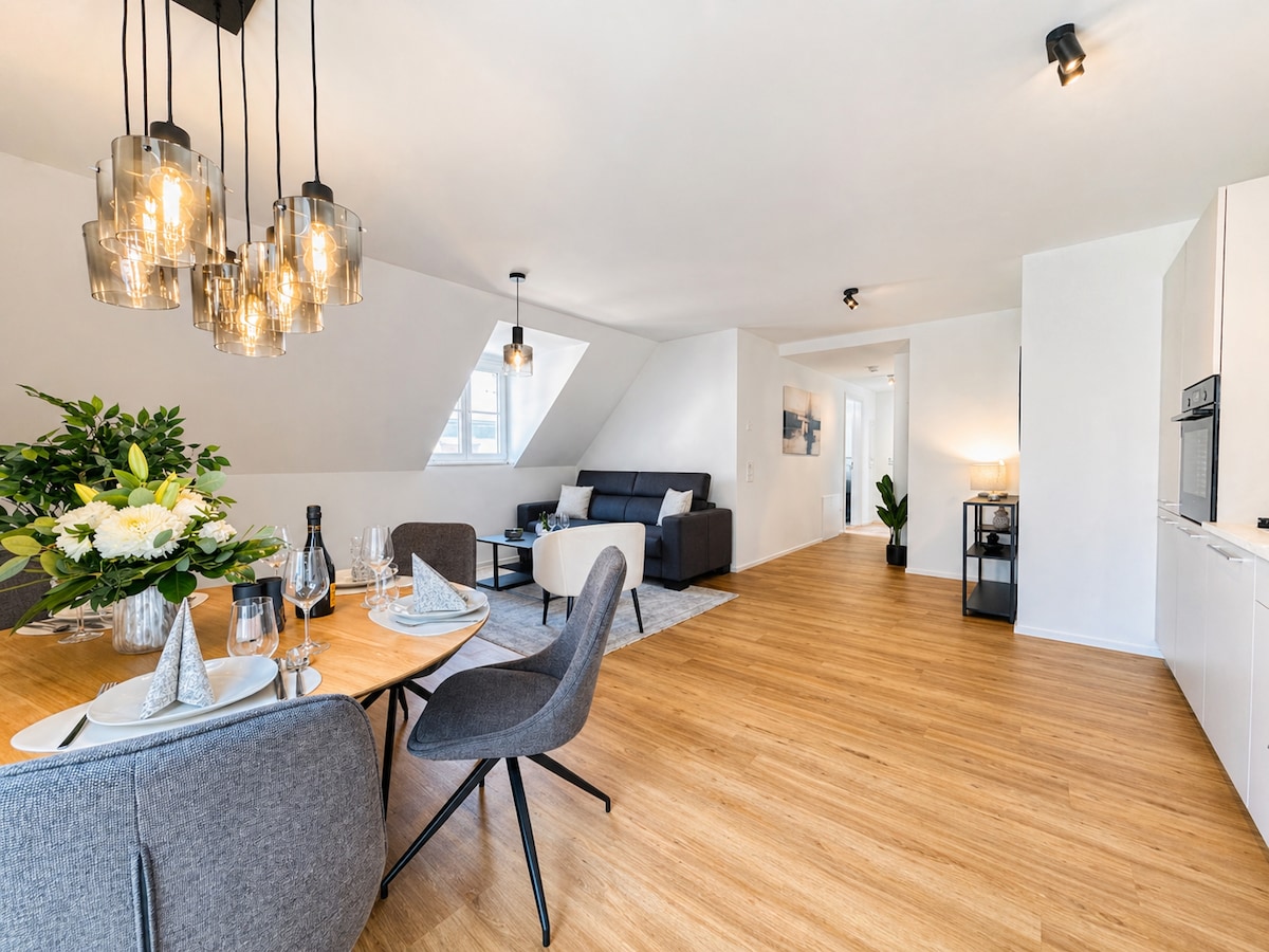 Potkrovlje na švajcarskoj obali jezera Konstanca savršeno je za turiste i poslovne putnike koji traže izuzetan smeštaj sa jedinstvenim panoramskim pogledom. Stan je funkcionalan i opremljen sa puno ljubavi prema detaljima. Dostupna su parking mesta, a do železničke stanice i jezera su dostupni u nekoliko koraka. Prekrasni Uferweg vas poziva na šetnje.