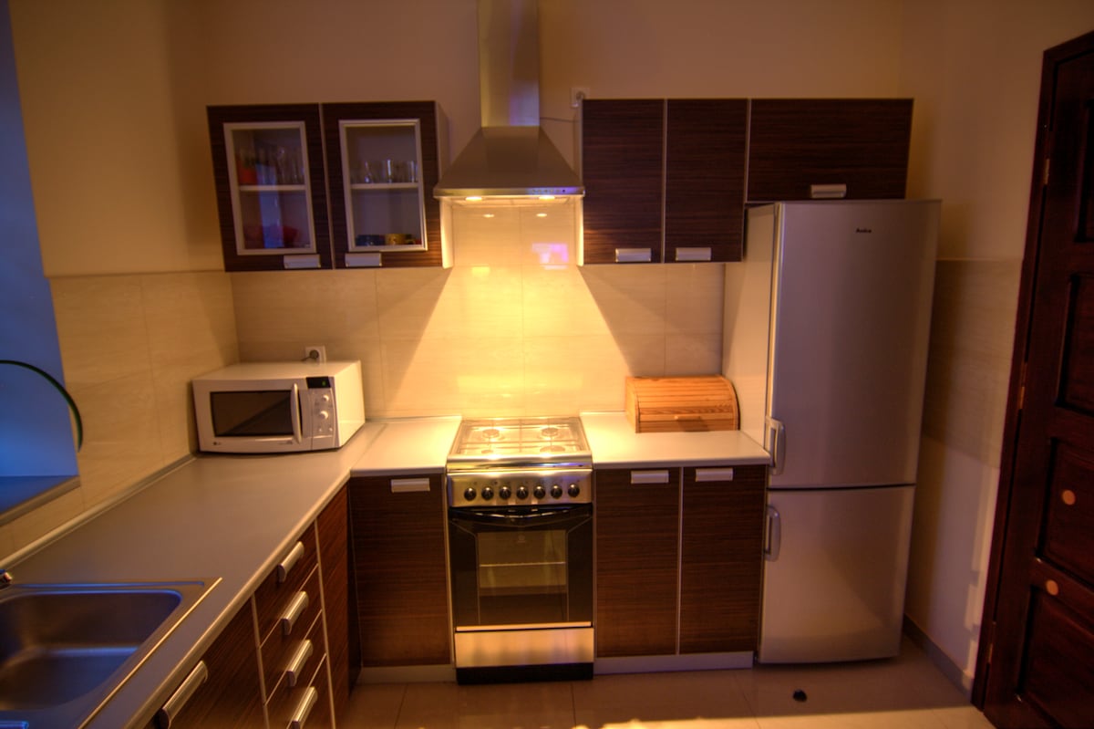 Autentičan, elegantan, prostran stan (55 m2) sa visokim plafonima (3,70 m), prelepo renoviran starinski nameštaj, udoban bračni krevet, posebno rađen kuhinjski nameštaj sa mermernom radnom pločom. Pravi stan, a ne hotel! Nalazi se u gradskoj kući iz 19. vijeka s pogledom u srcu Podgórzea. 1 spavaća soba, dnevna soba, besplatan VIFI, 40" flat-screen sat TV, mašina za pranje sudova, šporet, rerna, frižider, pegla, veš mašina, sušilica za kosu, fen za kosu. Pravi dom daleko od doma! Svideće vam se! Naši gosti to rade!