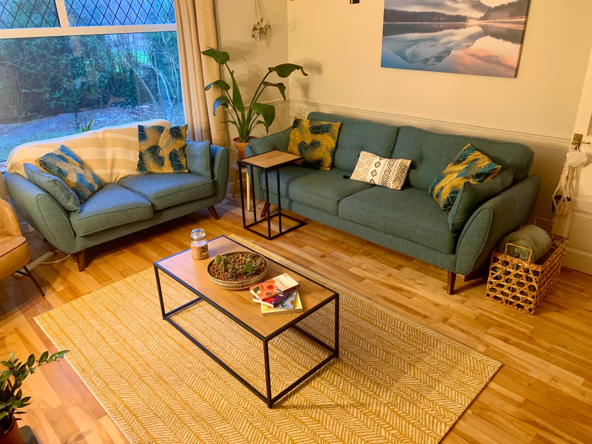 Only 7 mins from Limerick City Centre, our Unique Bohemian Inspired Home is the perfect base for Visitors to Limerick and the West of Ireland. Spread over 1,500 sq ft with mature garden and 3 Large Double Bedrooms, Our detached home offers you all you could need for a relaxing stay: Large Rain Shower Dedicated Office Space (x2 Desks w/Monitors) 1,000 MB Fibre Powered Wifi x2 55” Smart TV’s Vinyl Record Player Mini Home Gym (free weights, rowing machine) Smart Heating Controls