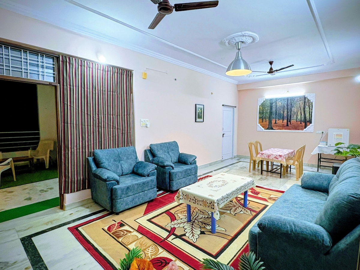 Kuća s 1 spavaćom sobom u centru grada (sa kupatilom, prostorom za sjedenje i kuhinjom) u mirnoj, uglavnom stambenoj četvrti. Prostor Spavaća soba uključuje bračni krevet u spavaćoj sobi sa klima-uređajem, plafonskim ventilatorima. Dvorana sa sofom 3 ,TV-om, Diwan Cot, stolicama za opuštanje, Wi-Fi mrežom, fen za kosu i plafonskim ventilatorom. Kuhinja je dobro opremljena za samostalno kuvanje. Uređaji uključuju 1 indukcioni šporet, frižider, mikrotalasnu rernu, pribor za jelo i posuđe za 6 osoba. Dostupno gostima Cijela jedinica s potpunom privatnošću i pristupom digitalnom ključu.