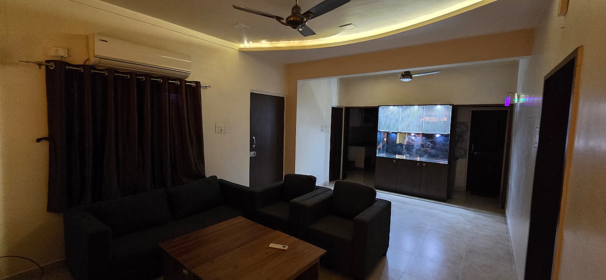 Udobnost u skladu sa prirodom | Vrhunski novoizgrađeni bungalov/vila sa 2 spavaće sobe, u blizini jezera Manas – Bukum. Prostran prvi sprat 2BHK sa dovoljno parkinga u mirnoj zelenoj površini. Poslušajte ptice iz obližnje šume i farmi, Wi-Fi, kuhinju i mirnu dnevnu sobu za rad ili odmor. Porodično, pogodno za zvaničnike i okupljanje porodice i prijatelja, savršen bijeg u blizini grada okružen prirodom. Mali roštilj je dostupan uz naplatu. Identifikacioni dokument sa fotografijom svih gostiju koji su obavezni.