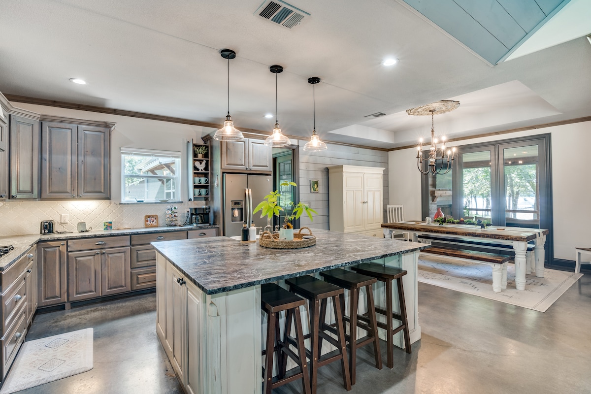 🌅 80+ recenzija sa 5⭐️! Veličanstveni pogled na jezero, zalasci sunca i udobni kreveti u predivnom domu na jezeru Fork. Ogromno pristanište sa podvodnim svetlom čini noćni ribolov nezaboravnim. Dovedite svoj čamac ili ga iznajmite u blizini – javno pristanište je odmah iza ugla. Ne pecate? Uživajte u kajacima, đakuziju, Wi-Fi i pametnim TV-ima. Nakon dana na vodi, opustite se znajući da nastojimo da budemo domaćini s 5⭐️. Teren za golf Lake Fork udaljen je samo 800 metara, što ovo čini savršenim porodičnim odmorom za zabavu, udobnost i trajna sjećanja!