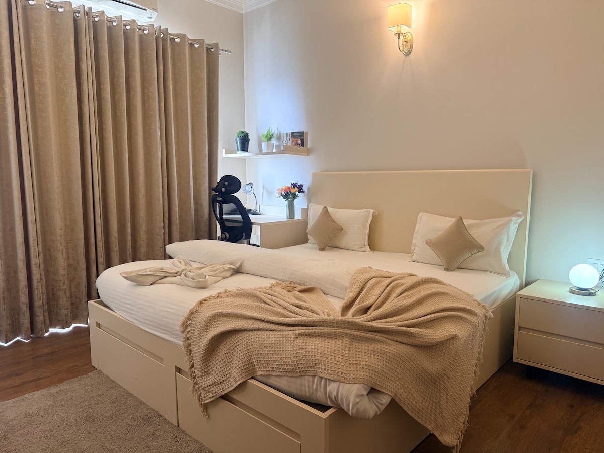Indulge in a luxurious stay at Bloom Central, where modern elegance meets comfort. This stylish 1BHK features a chic open kitchen, a private balcony, and exclusive access to premium amenities including a serene pool and secure parking. Perfectly located in the heart of Gurgaon, it offers an upscale retreat for guests seeking sophistication, convenience, and a truly elevated experience.