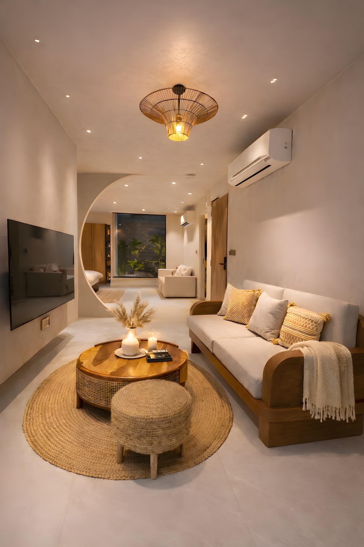 Dobro došli u svoj luksuzni dom u Agri! Ovaj prelijepo dizajnirani trosobni stan udaljen je samo nekoliko minuta od čuvenog Tadž Mahala, koji nudi savršen spoj moderne udobnosti i praktičnosti. Prostor Zakoračite u svijet sofisticiranosti. Naš stan ima pažljivo uređenu estetiku sa čistim linijama, toplim teksturama i vrhunskim sadržajima. Bez obzira na to da li ste samostalni putnik, par ili porodica, ovaj prostor je osmišljen da pruži miran odmor nakon cjelodnevnog istraživanja Agre.