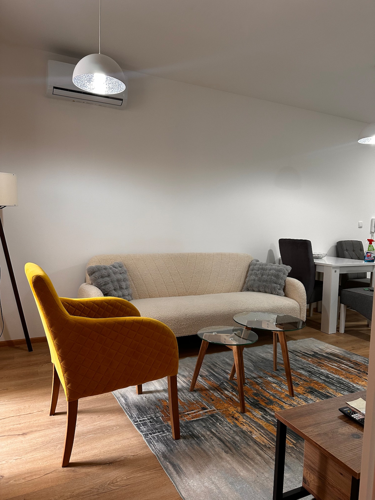 Uživajte u udobnosti i stilu u potpuno novom, luksuzno opremljenom stanu, idealnom za kraći boravak, romantični vikend, poslovno putovanje ili opuštanje u gradu! Više o stanu: Udoban dnevni boravak sa pametnim TV-om Bračni krevet (širine 150-1 Potpuno opremljena kuhinja Elegantno kupatilo Besplatan Wi-Fi, klima-uređaj, grijanje BESPLATNA GARAŽA Lokacija: Stan se nalazi u atraktivnom dijelu grada – mirnoj ulici i samo nekoliko minuta hoda od centra, restorana, kafića i tržnog centra. Odlična povezanost sa svim delovima grada.