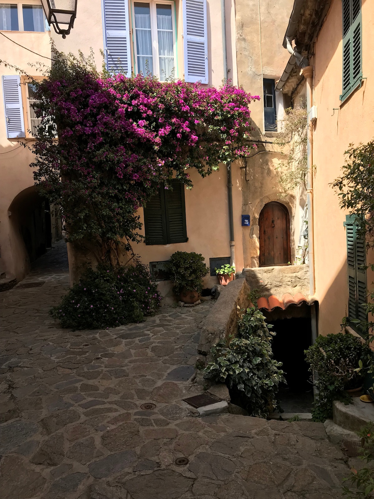 Šarmantni studio, renoviran, nezavisno od 35 m2 za dvije osobe ( 2 kreveta od 80/200, odvojiv ili dostupan) sa pogledom na more, unutar nadsvođenih bedema XIV°. Ima dvije male terase koje se nalaze na 1. spratu sa pogledom na more, u okolnoj ulici, sa jedne strane. Još jedan privatni ulaz ispod je cvetna pešačka ulica u selu. Predivan pogled, velika, svježa soba, visok plafon, gde se nalazi nakon plaže.