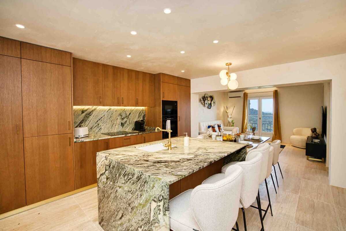 U Đgaru, poluostrvo Sen-Trope, veličanstvenom 65 m2 na krovu sa panoramskim pogledom na more na ostrva Levanta. Velika veoma sunčana drvena terasa od 30 m2, okrenuta ka jugu, pogled od 180°. Utisak da ste na luku za brodove. Stan je udaljen 50 metara od plaže Đgaro i 100 metara od prirodnog rezervata Kap Lardier. Ima konfiguraciju potkrovlja. Spavaća soba može da bude otvorena u dnevnoj sobi i vidi da more leži u krevetu!!
