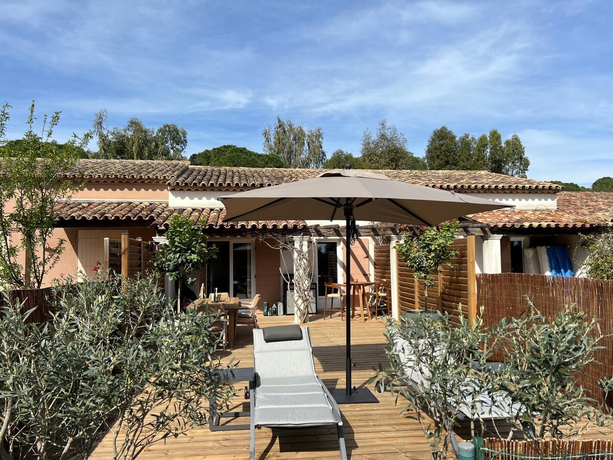 Cabane Theasis ,na grčkom, kontemplativni pogled. Utočište mira sa spektakularnim panoramskim pogledom na Sredozemno more i Zlatna ostrva. 15 minuta od Saint-Tropez, Cabane Theasis se nalazi u srcu očuvanog pejzaža: imanja Cap Lardier. Ovo zaštićeno područje, zeleno plućno krilo obale Var, nalazi se ispod 5 km fine pješčane divlje plaže Gigaro. Staza uz obalu okružena potocima nalazi se odmah ispred vas, a svečane plaže Pampelona udaljene su samo nekoliko minuta vožnje automobilom.