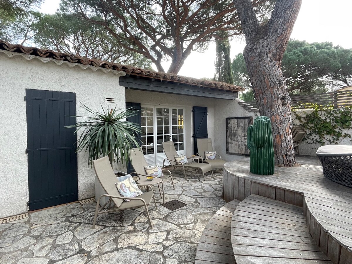 Tražite miran smještaj na poluostrvu Saint-Tropez? Naša kuća je idealno mesto. Nalazi se na 15 minuta od centra Sen Tropa i Pampelonea, na 10 minuta od plaža Gigaro i kamenom udaljenosti od Kasina. Kuća je potpuno nova i deo je male vinarije. Ima sopstvenu baštu i deli bazen (4*15 m) sa glavnom kućom. Za golfere, 3 rupe i bunker će trenirati vašu ljuljačku.