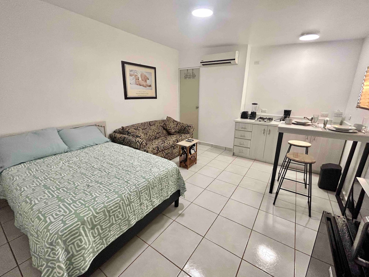 Udoban studio/studio u Reket klub – spavaća soba 1 Odsjednite u udobnom studio apartmanu sa centralnom lokacijom, 3 ulice od američkog konzulata, u blizini OXXO, Caffenio, Costco, bioskop, restorana, banaka i još mnogo toga. Uživajte u kupatilu, jutarnjoj kafi, radnom prostoru, TV-u, Wi-Fi mreži, digitalnom ulazu, kamerama u zajedničkim prostorijama.
