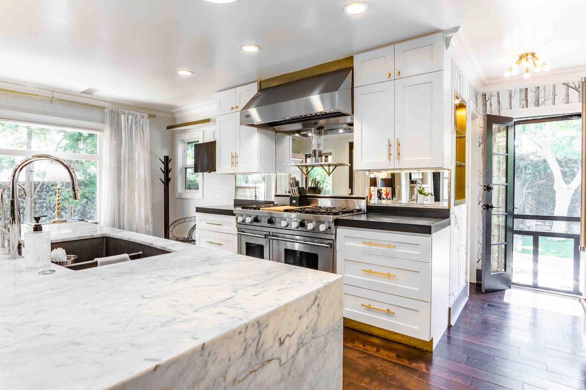 Podmladite se i svirajte klavir u skrovitoj hidromasažnoj kadi (i hladnom uranjanju!) pod zvezdama, okružena tropskim biljkama i voćkama, sa luksuzom u stilu velikog stila skrivenog u srcu Silverlejka. Na ovom mirnom ćorsokaku možda ćete zaboraviti da ste na kratkoj šetnji do najboljih kafića i restorana u Silverlejku. Kuća se može pohvaliti sa dvije privatne terase s pogledom, pustinjskom i citrusnom baštom, jezerom, ognjištem i odvojenom meditacijom/radnom sobom. Predstavljen kao jedan od 12 „domova iz snova“ za iznajmljivanje u Los Anđelesu!