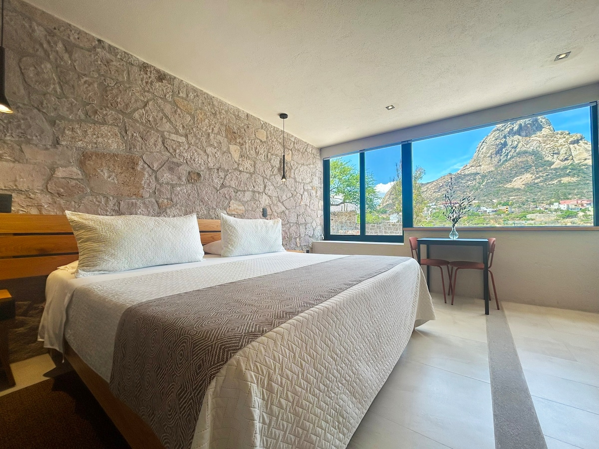 Najbolje mesto za boravak u čarobnom selu Bernal je naš prelepi dvosobni stan. Ima minimalistički dizajn koji meša materijale i flore karakteristične za region kako bi se postigla prijatna atmosfera koju će uvijek uokviriti Peña de Bernal, jer je bio orijentisan da ima najbolji pogled na monolith. Nalazimo se u centru grada, savršen je za šetnju. Imamo nadzor u svakom trenutku i najbolju terasu.