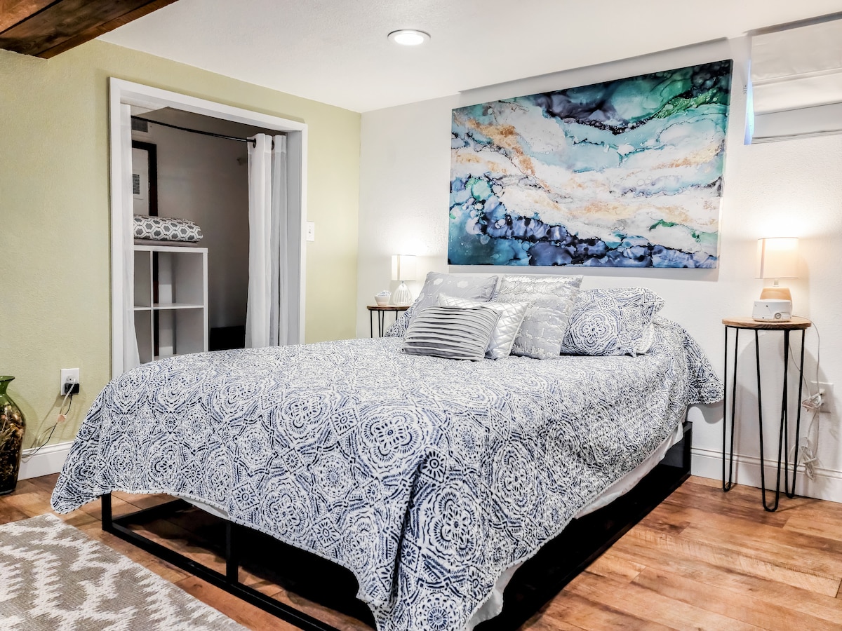 Ovo je podrumski studio apartman Džoša i Kristi. Postoji zaseban ulaz koji imate samo za sebe. Udaljeni smo samo 5 minuta hoda od centra grada, tako da možete lako da prošetate do večere, obiđete centar grada i obiđete Rapid Siti. Sedeći visoko iznad Mt Rushmore Road-a, svjetlo sa 3 prozora čini da se osjećate iznad zemlje. Naše zadnje dvorište je lijepo za opuštanje, a naša lokacija je praktična. Prihvatamo kućne ljubimce sa potpuno ograđenim dvorištem! Da li smo rezervisali? Pogledajte naš prostor na spratu „Modern Meets Cozy"
