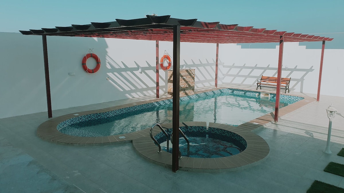 Kapija nudi direktan pristup plaži sa pogledom na more Gosti se mogu opustiti na terasi ili uživati u bujnom vrtu, upotpunjenom besplatnim Wi-Fi-jem u cijelom objektu. Vila je opremljena klima uređajem, potpuno opremljenom kuhinjom. Dodatni sadržaji uključuju bazen s pogledom, terasu i besplatan privatni parking u sklopu objekta Utvrda Al Hadd udaljena je 14 minuta hoda i nudi kulturna istraživanja. Okolina pruža panoramski pogled na baštu i mogućnosti za aktivnosti na otvorenom