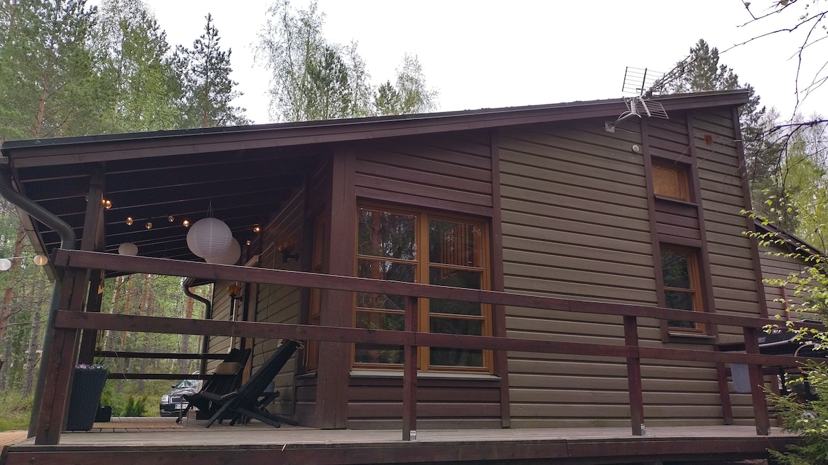You are welcome to enjoy your time in a cozy cabin in nature with a river and pine forest nearby, and a beach within walking distance. Furnished with everything to get the best of your vacation. Guests can use the entire house with sauna, terrace and barbecue facilities. Kids can have fun at play area. The price includes 2 hours use of sauna. Possibility to use hot tub if wished. We bring firewood and water. The price of a hot tub starts at €70 per day.