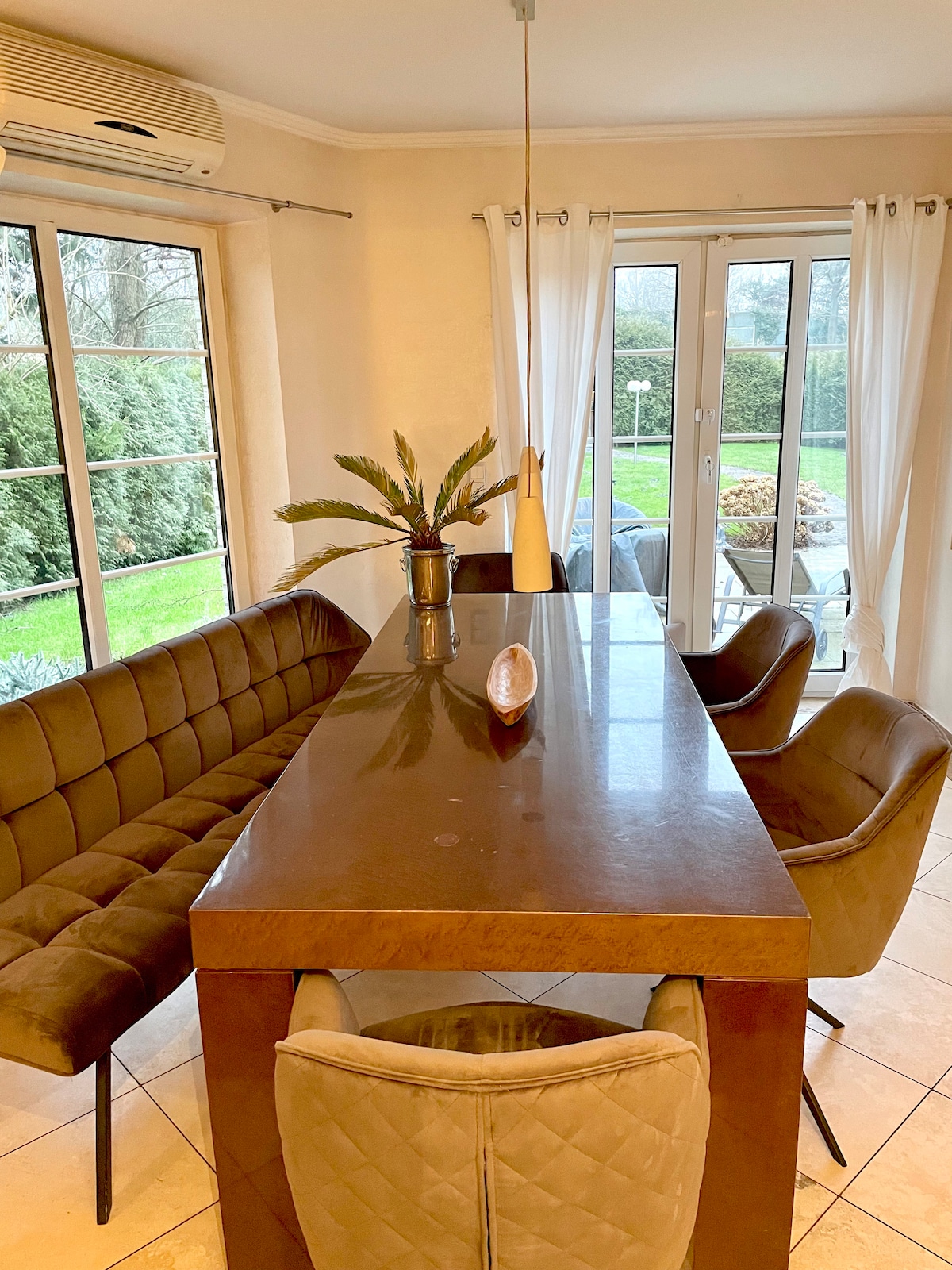Ova istorijska zgrada je tipična severnonemačka farma i nalazi se na ivici malog sela sa neometanim pogledom na prirodu. Do sopstvene livade iza kuće nalazi se pored naše 2 ha velike prirodne parcele, sa mnogo udobnih mesta ispod drveća i na potoku. Cate smo renovirali prirodnim materijalima i udobno opremili, npr. kaminom i malom saunom.