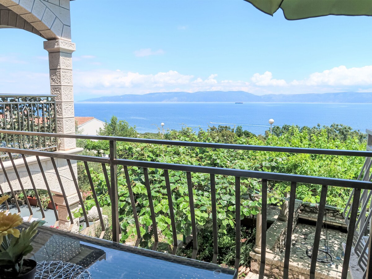 Villa obitelji Dušati smještena je na idealnom mjestu s kojeg se pruža pogled na plavetnilo Kvarnerskog zaljeva te na susjedne otoke Cres i Lošinj. Nadomak mora, sa svojom ponudom iznajmljivanja apartmana nudi odmor prožet prirodom i tišinom. Sa svojim brojnim specifičnostima zadovoljiti će sve vaše zahtjeve za idealnim odmorom. Na ograđenom posjedu nalaze se dvije kuće i mjesta za parkiranje. U svakoj kući su po dva apartmana s osiguranim jednim parkirnim mjestom po apartmanu.