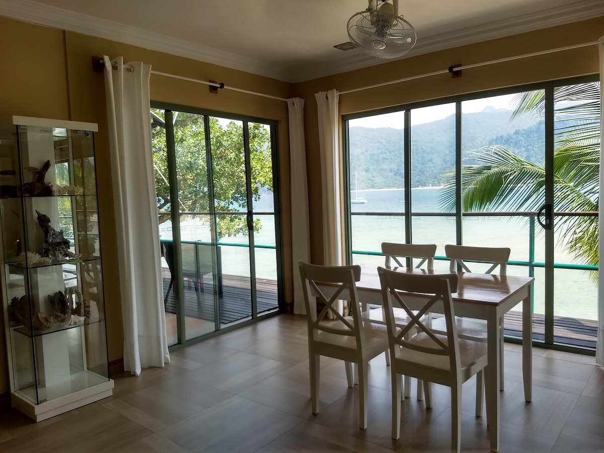 Naš apartman za goste se nalazi u Kampung Juari na ostrvu Tioman. Nalazi se na brežuljku na severnoj strani zaliva Juara - sa neverovatnim pogledom na ceo zaliv - okružen je netaknutom prašumom i prelepom prirodom. Mirno i privatno područje sa rekom koja odvaja imanje od zajedničkog prostora za plažu. Na visokoj plimi reka se može preći sa jednim od naših zajedničkih kajaka - ili samo šetnjom kroz vodu - a tokom oseke je lako ući i izaći iz objekta.