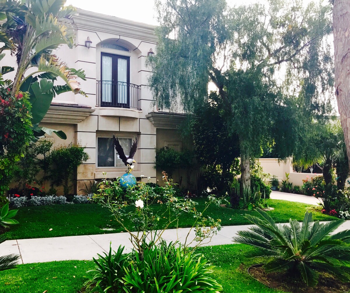 Naša kuća za goste je dvospratni apartman. Površina je oko 960 kvadratnih stopa. Ima privatni ulaz sa ulazom bez ključa, kupatilo sa tušem, čajnu kuhinju sa frižiderom, aparat za kafu i toster. Naša gostinjska kuća ima 2 bračna kreveta, 2 pametna televizora sa velikim ekranom (70 inča i 65 inča) sa Hulu, Netflix, Disney +, ležaljke i besplatan WI-FI. U jedinici mogu udobno da spavaju 4 odrasle osobe. Udaljeni smo oko 5 milja od plaže. 8,9 milja od stadiona SoFi i u blizini mnogih bolnica.
