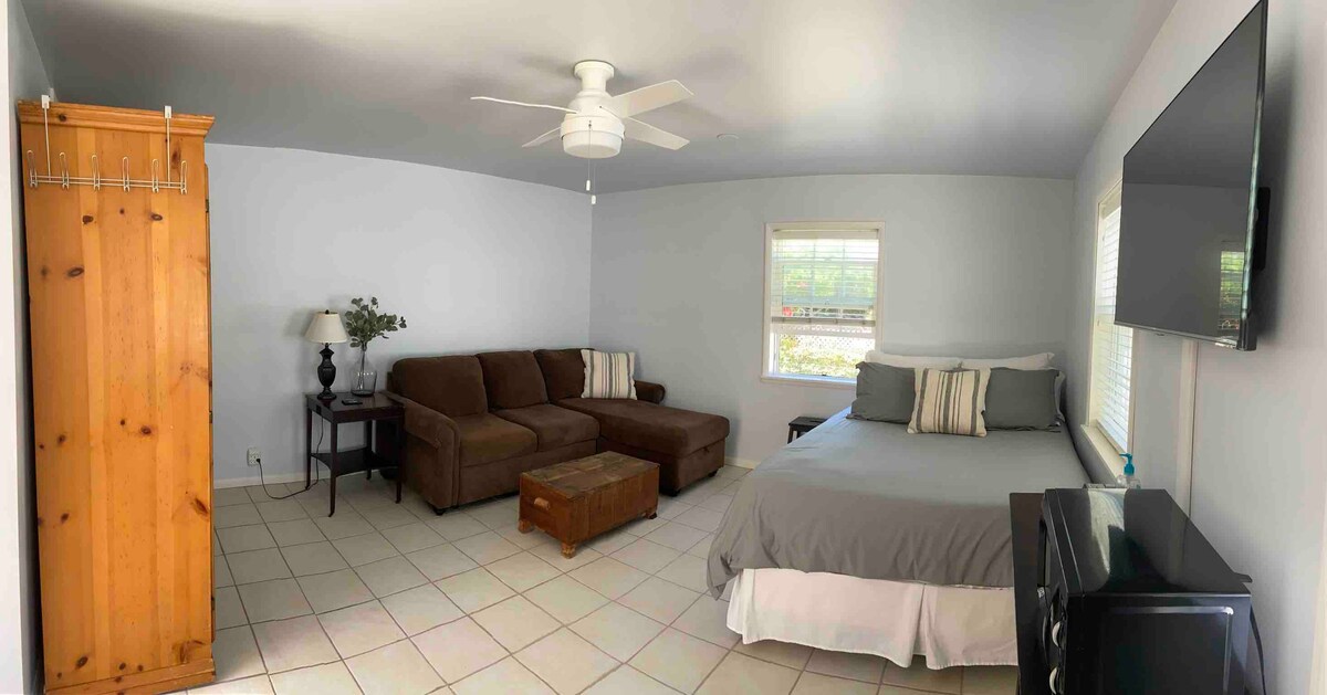 Take a break and unwind at our tranquil getaway accommodation. Located in a quiet and tree lined suburban neighborhood in Long Beach, our spacious studio suite provides your own private entrance and keypad entry. We are 20 mins from Disneyland/Knotts, 30 mins from LAX and SNA airports, and Universal Studios, 5 mins from LGB airport, and within minutes to the 405/91/605 freeways, beaches, restaurants, parks, hospitals, LBCC, CSULB, and shopping centers.